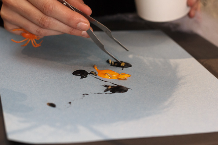 Antonia Musso prepares the maggot art with some acrylic paint (Photo: Sean McCann).